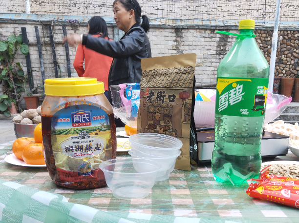 游戲做完,就到了大家最期待的大餐了。在院子里支起幾張桌子,是不是有種吃席的感覺了呢?我們的食堂大師傅早已準(zhǔn)備好了食物,大家一人端幾個(gè),很快就擺滿了桌子。
